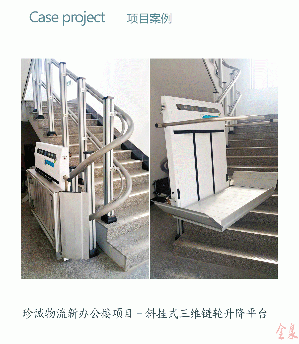 濟(jì)南金泉升降機(jī)械有限公司定制的斜掛式無障礙升降平臺,樓道專用升降機(jī),地鐵專用樓梯升降機(jī)可以很好的幫助老年人或行動不便的人自己上下樓梯。該產(chǎn)品易于操作,僅取決于安裝在樓梯左側(cè)或右側(cè)的軌道。破壞基礎(chǔ)設(shè)施已經(jīng)很好地解決了他們的旅行問題。特別適用于已經(jīng)翻新的樓梯臺階。
