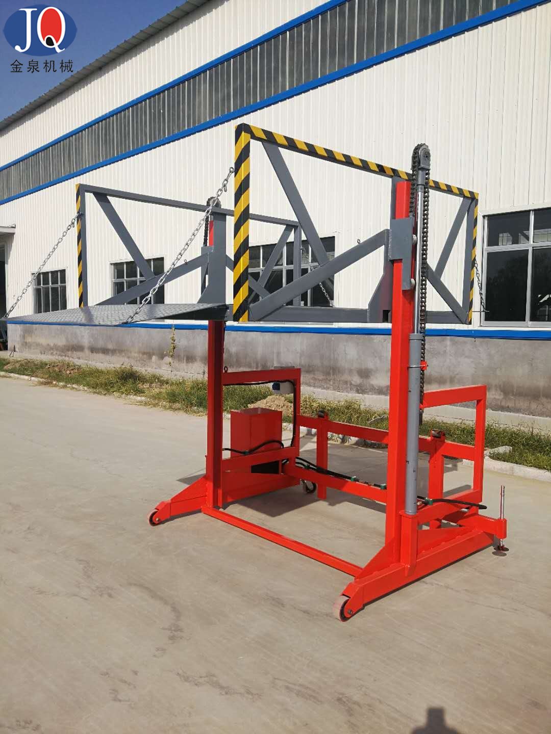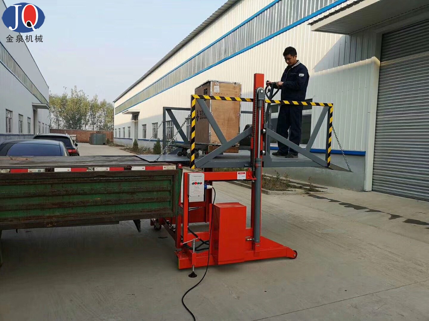 6.液壓系統(tǒng)及電器控制系統(tǒng)安裝在該設(shè)備側(cè)面,便于維修及預(yù)防車輛在裝載貨物倒車時頂撞到該電控箱;